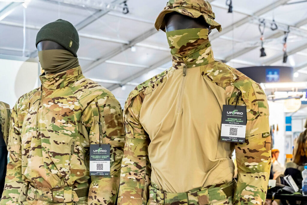 UF PRO a exposé une sélection de ses derniers vêtements tactiques conçus pour la performance dans des environnements opérationnels divers. Parmi les pièces phares, citons la chemise et le pantalon de combat Striker TT, conçus pour offrir respirabilité et durabilité dans les climats chauds et humides. La veste et le pantalon Monsoon XT Gen.2 ont été présentés comme des solutions fiables pour les opérations se déroulant dans des conditions météorologiques humides et difficiles. La chemise de combat d’hiver AcE Gen.2, offrant un équilibre entre isolation et gestion de l’humidité pour les missions par temps froid, était également à l’honneur. L’exposition d’UF PRO était complétée par le pantalon de combat Striker X Gen.2, mettant ainsi l’accent sur la durabilité et la mobilité.