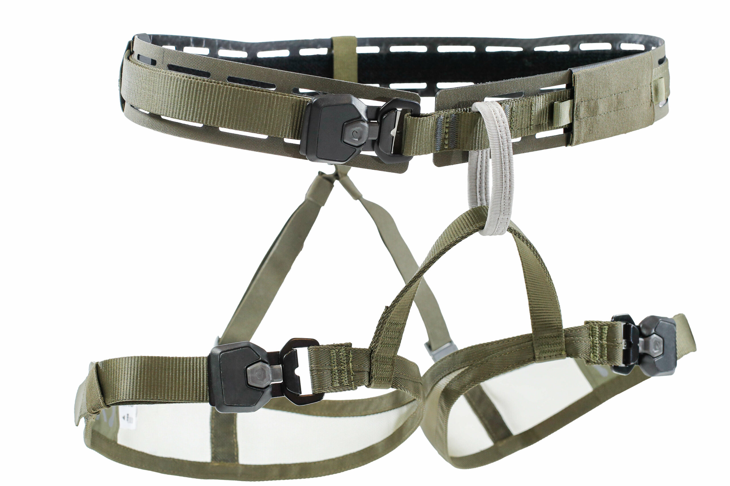 With its innovative design, the Edelrid SE Shikari Grid offers unparalleled versatility, serving as both a war belt and a sit harness when paired with leg loops. Its MOLLE slots allow for customisable pouch attachment, ensuring adaptability in any situation.
