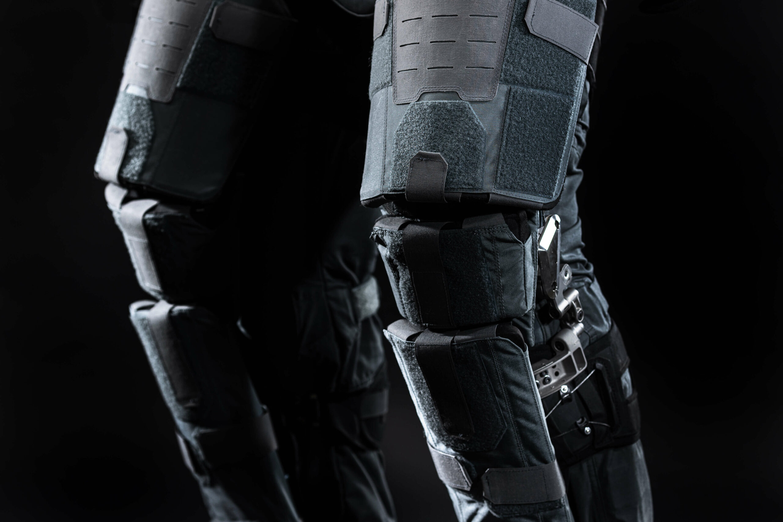 The ExoM Exoskeleton revolutionises the experience for military and law enforcement personnel facing extended wear of heavy equipment and demanding high-level ballistic protection. By redistributing up to 70% of the load from the shoulders to the ground, this technology alleviates physical strain, and mitigates injuries, allowing operators to focus on their duties.